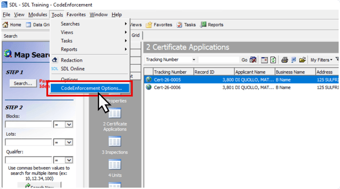 Make sure you have administrative access to the Code Enforcement module.