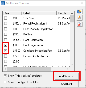Click Add to open the Multi-Fee Chooser window.