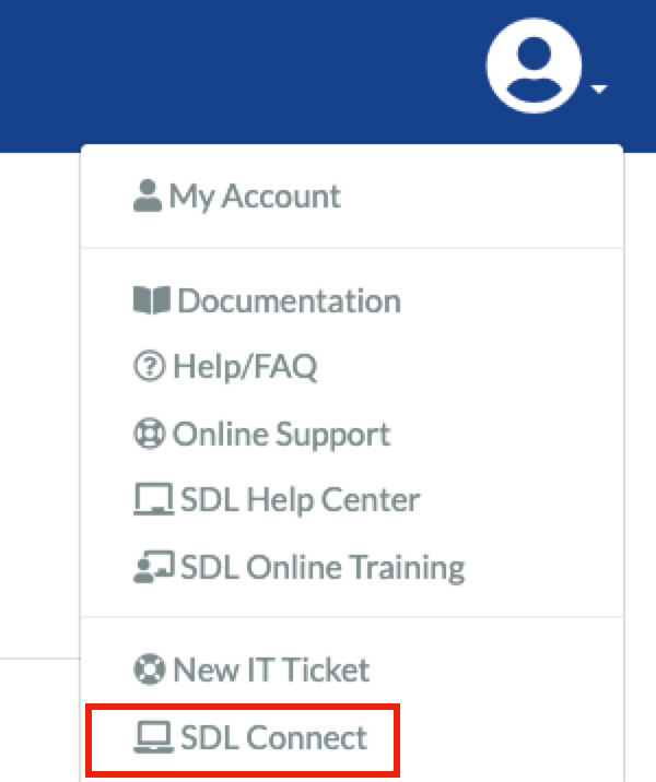 You are now ready to go to SDL Connect. In the top right corner, choose the avatar then go to SDL Connect.