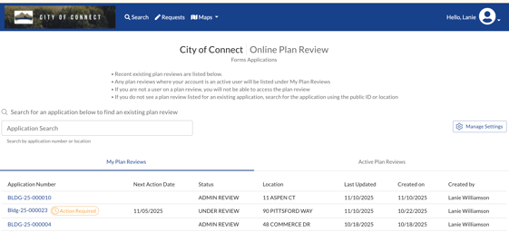 Locating an Existing Plan Review