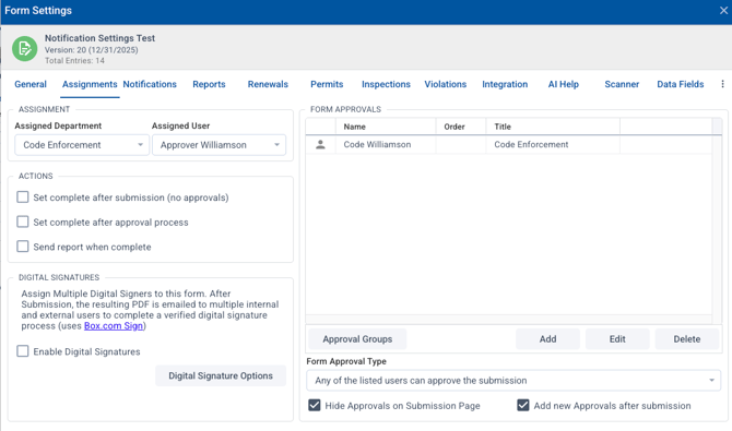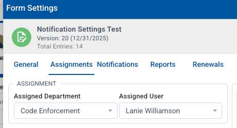 This is optional. The Assigned User will get an email notification when a new submission of this form/permit comes in.
