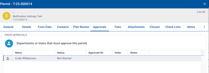 Users with approval responsibilities will need to go to the Approval tab on the permit submission, click their name: