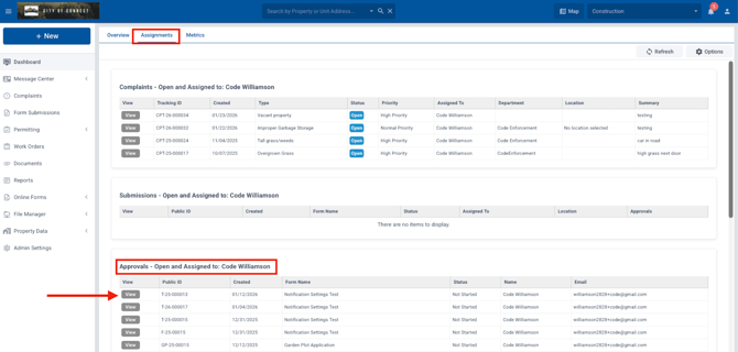 Find Your Approvals: Scroll down to the Approvals - Open and Assigned to [Your Name] section.