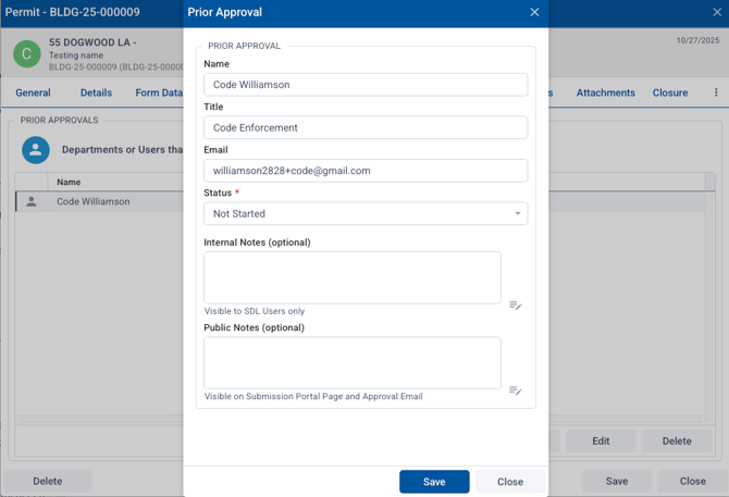 Optional: Add Internal Notes (visible only to staff) or Public Notes (visible to the applicant on the portal).