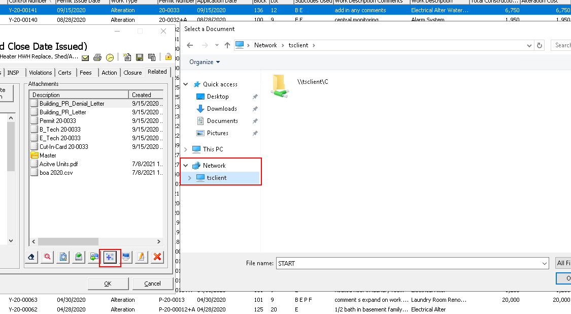 The upload button in the attachment area will require some navigation. The tsclient network drive will allow you to navigate your files. If you have any mapped drives, they will also show up here. Note, the Quick Access buttons are not the ones for your machine; to unpin them, right-click the shortcut and select ‘Unpin from Quick Access’.